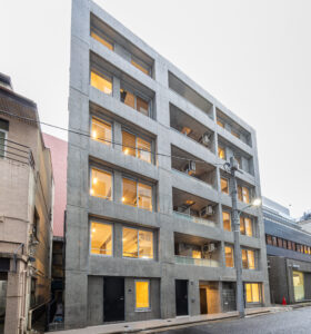 また、日本橋富沢町特有の細やかなスケール感に配慮し、過度な造形的主張を抑えた落ち着きのある立面構成とすることで周辺環境と調和しながらも、存在感を持つ建築となっています。